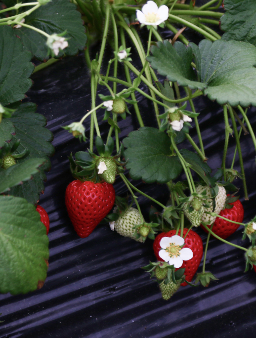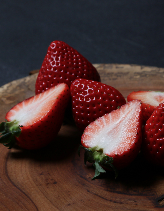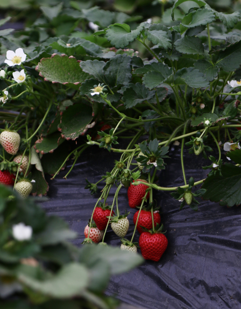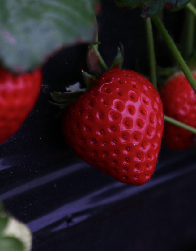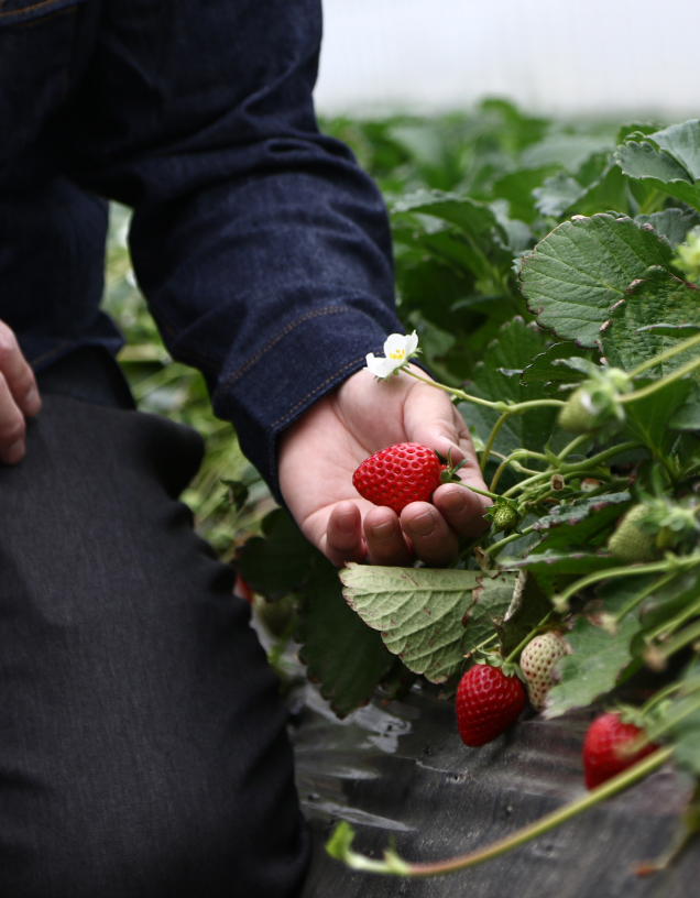 味と収量は反比例するため、熟れきる前に収穫すれば株に養分が残る分、多くの量を収穫でき、硬いので輸送に神経を使いません。でも、ユーファームは、おいしさのピークを味わっていただきたいから、収量ではなく、おいしさ本位。完熟ポイントをプロの目で見極め、収穫するのはヘタの付け根まで真っ赤に熟れた粒だけ。いちごのサイズに関わらず、濃厚な甘みを堪能していただけるのが、ユーファーム・クォリティです。